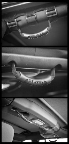The Jeep Wrangler JK Grab Handle Kit comes with 5 black grab handles for the front and rear of your Jeep.